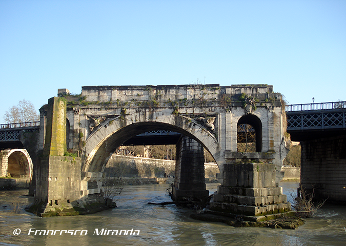 It has since been rebuilt several times and (partially) destroyed by the floods of the Tiber. After the great flood of 1598 the bridge was not rebuilt and changed its name to Broken Bridge, as it is now known in Rome. Between 1853 and 1887, a metal walkway supported by cables connected the stump as a bridge still standing to the left bank of the Tiber. Following the walkway was removed and the two arches nearest to the shore were destroyed due to the construction of modern river banks. Today only one remains standing of the three arches resting on piers original sixteenth of the second century BC. P.S. See you every monday for the Monday Night Shot! |
